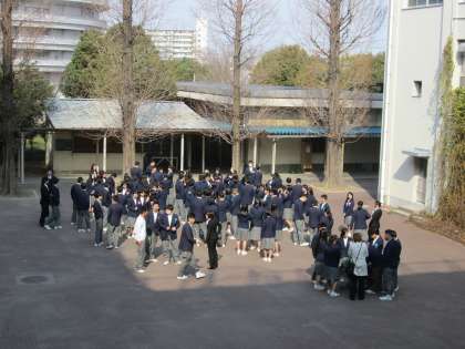 卒業生が中庭に集合。