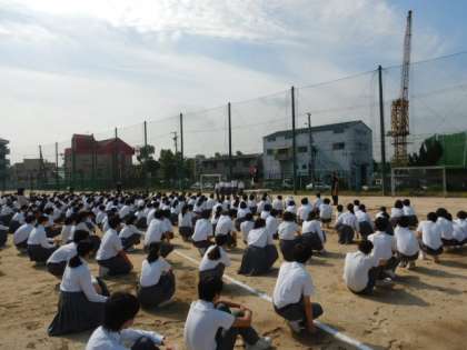 集会後には、町会別集団下校訓練にむけて、整列の練習を行いました、