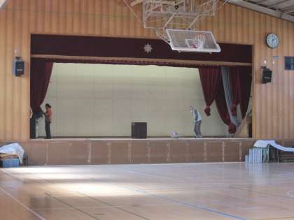 体育館の舞台フロアがかなり傷んでいるため、入学式を前にきれいにしていただいています。光り輝く舞台が楽しみです。
