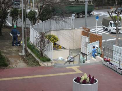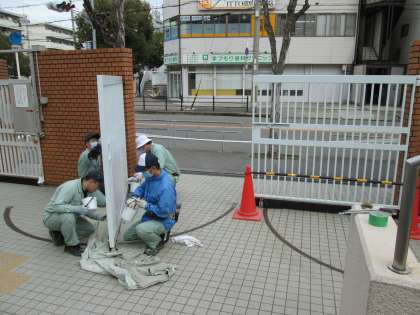 管理作業員さんの営繕班が、正門横の外柵と正門の塗装を、皆さんで協力してきれいにしていただきました。感謝!!