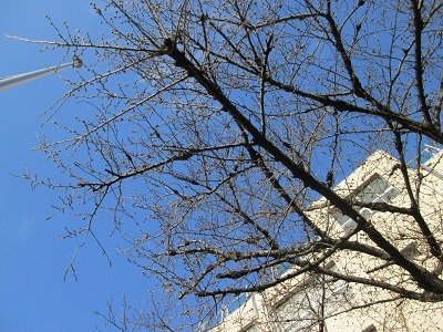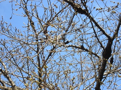 今日は素晴らしく晴れ渡り、桜も一気に蕾がふくらんで、ひょっとしたら・・・。