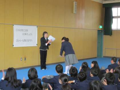 今朝は、今年一年努力してくれた生徒たちの代表に、努力賞がおくられました。