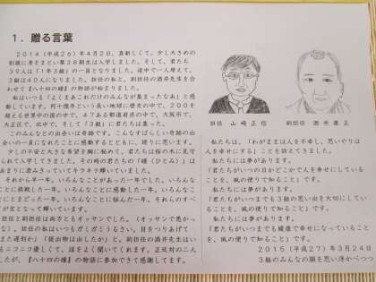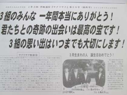 この一年間、それぞれのクラスを経営していただいた担任の先生。そして、ご支援いただいた副担任の先生、学年の先生方。本当にありがとうございました。