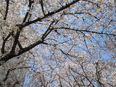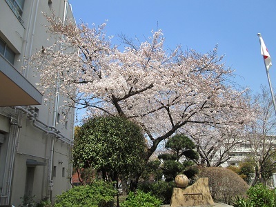 正門の桜は、一気に満開に近づいています。さて、週末の入学式は?