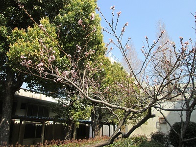 その中にある桜。正門とは日当たりが違うので、本番はまだ先です。