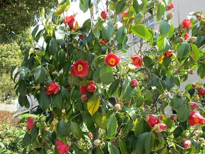 そして、ヒヤシンスと椿。とても色鮮やかです。