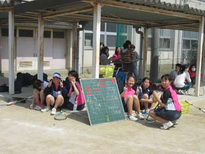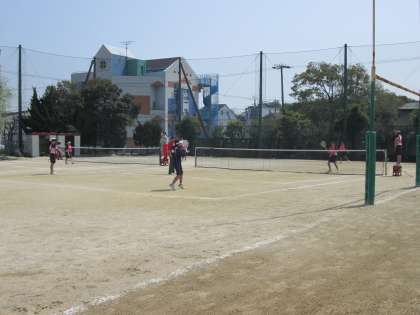 グランドは春爛漫。ソフトテニス部が大きな声を出して頑張っています。