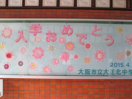 玄関の、美術部による「祝いの桜」も満開になりました。