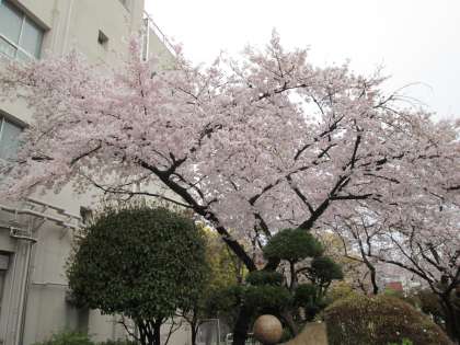 お天気ならば最高でしょう! 正門のソメイヨシノが満開に。