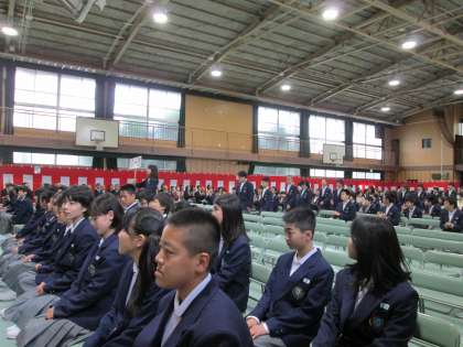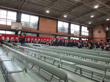 1組より、入場です。3年旧女子委員長を先頭に、堂々と胸張っての入場です。