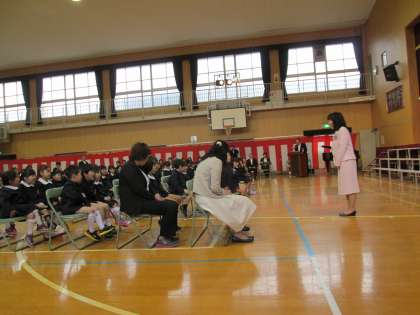 校長先生の式辞、PTA会長の祝辞に続いて、担任の先生が紹介されました。