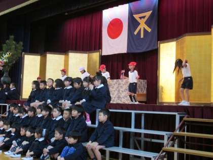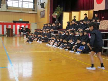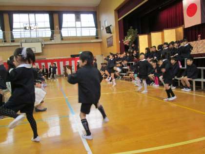 可愛らしいダンスや、縄跳び、コマ回し、けん玉なども披露され、新入生も緊張からリラックスしたようで、楽しんでいました。