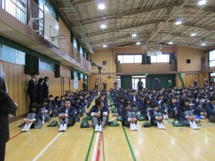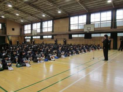 3学年揃ってのスタート。始業式が体育館で行われました。