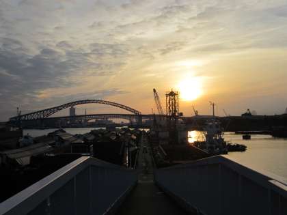 そして、夕陽に映えるはしけ桟橋。見ごたえがあります。