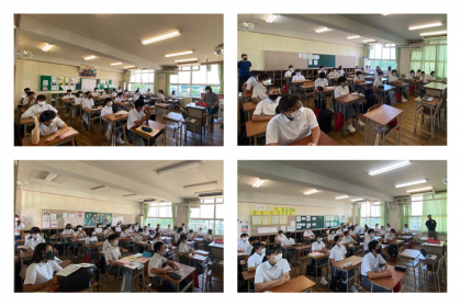 Teamsで校長先生のお話を聞いたあとは、夏休みの宿題の確認と提出がありました。ほとんどの人が仕上がっていましたが、中には持ってくるのを忘れた人も。