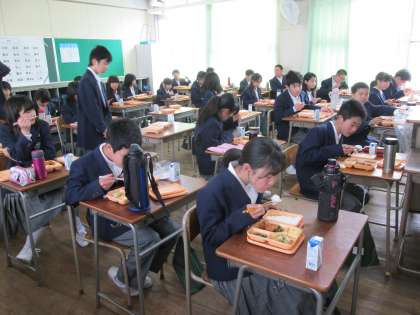 1年生は教室での配膳が整い、「いただきます!」