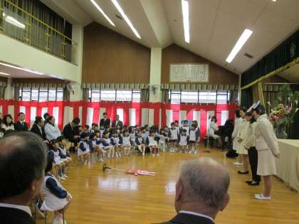 そして、園長先生の伴奏で、みんなで「チューリップの歌」を歌い、式が終了しました。これから、大きく成長してください。