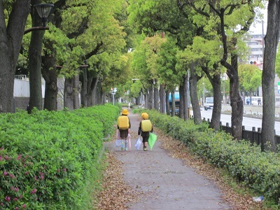小学生もお姉ちゃんと新1年生の弟が、仲良く登校して行きます。