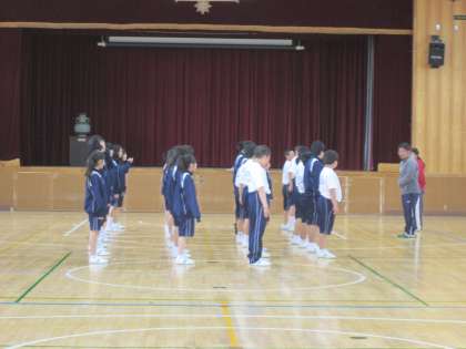グランドコンディションが悪いため、今日の体育は体育館で行われています。