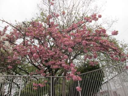 こぼれ落ちそうな花弁。良いお天気でないのが残念ですが、とてもピンクが鮮やかです。