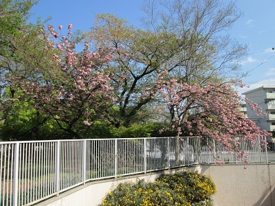満開の八重桜も今が見ごろ。ピンクが輝いています。