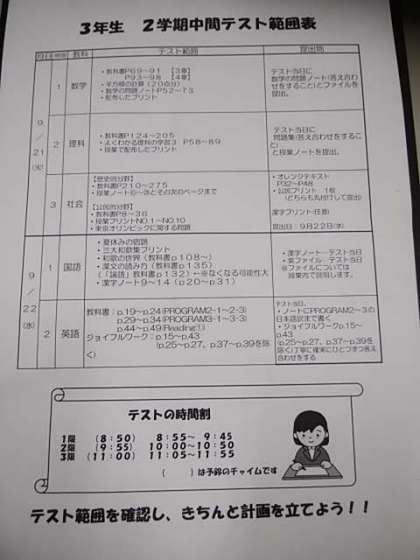 本来は金曜日にテスト計画を立てる予定でしたが、今日一日を大切に過ごしていてもらいたいので、テスト範囲を載せます。