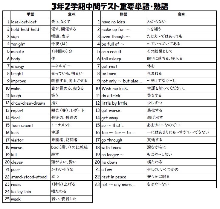 3年生☆英語の単語