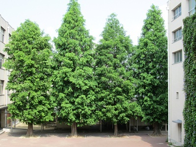 上の写真は昨年のもの。1本だけ、校舎よりも背が高かったですが・・・。