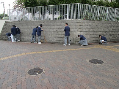 雨の降る中でしたが、ラグビー部、バレー部の諸君が正門横の溝掃除をしてくれました。感謝!