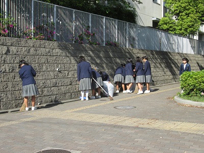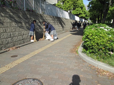 毎日、溝に溜まる桜の残骸。今日はソフトテニス部が、きれいに掃除してくれました。