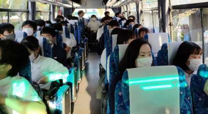 バスに乗り込み出発しました。