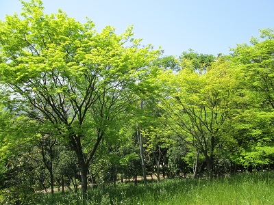 昭和山はツツジももちろんのこと、木々の緑も鮮やかで、森林浴が楽しめます。特にもみじの緑はキレイです。秋の紅葉が、今から楽しみです。