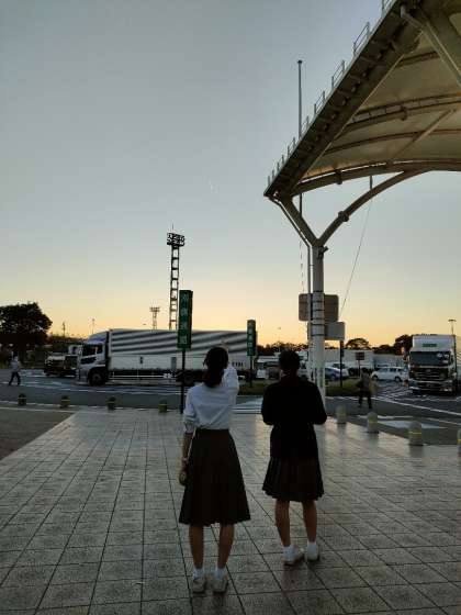 夕焼けが綺麗な中バスに揺られます。