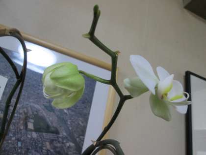 真っ白な「胡蝶蘭」。また一つ、開花しました!