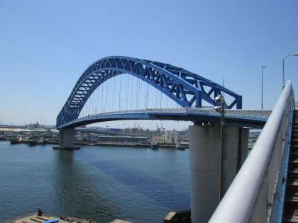 続いて「千歳橋」。ブルーのアーチ橋の美しさは大正区NO.1です。
