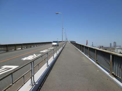 そして、港区と結ばれる「なみはや大橋」。たもとからは、かなりの角度です。