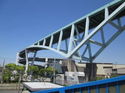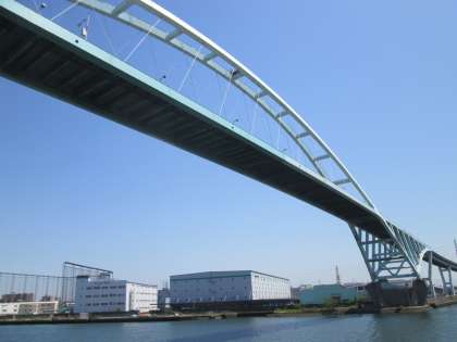 新木津川大橋はかなりの高さ。大型船舶が川を遡れるように配慮されています。