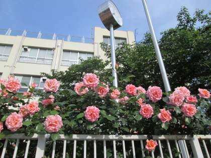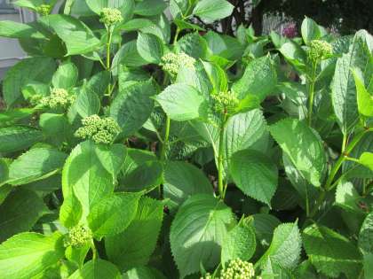玄関のバラは元気よく、アジサイも今か今かと待ち構えています。