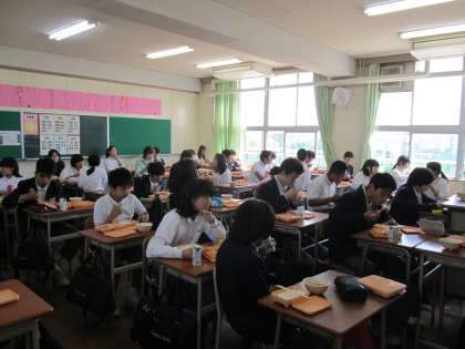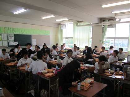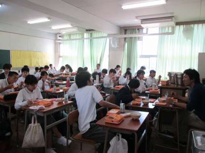 2年は配膳室前に取りに来るのも早く、すぐに「いただきます!」