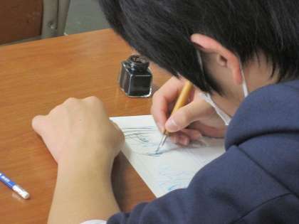説明の後に、実技指導。みんな、ペンを持たせていただくと、真剣そのもの。