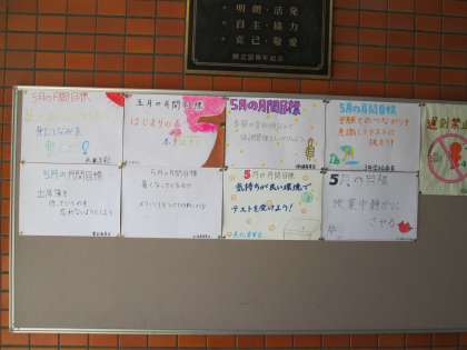生徒各種委員会を終え、今月の目標が玄関に張り出されました。