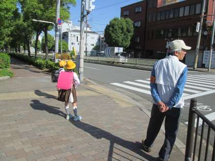 あいさつはもちろんのこと、車との接触が起こらないように、信号を守るように呼びかけていただいています。