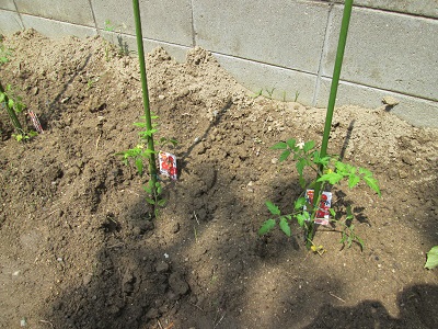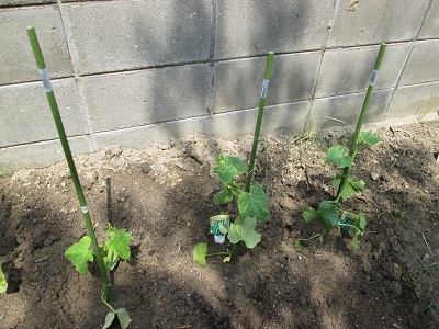 トマトやキュウリが植えられ、少し大きくなってきました。