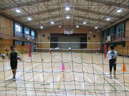 そして、体育館では、男子バレーボール部がジャンピングサーブの練習を頑張っています。