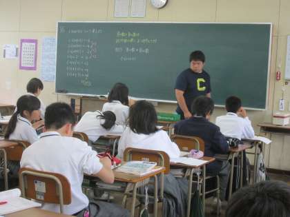 数学は、「正の数・負の数」の復習問題。机間巡視で確認をされていました。