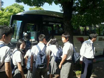 学級ごとにバスに乗って、須磨へ出発します。