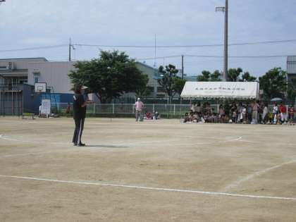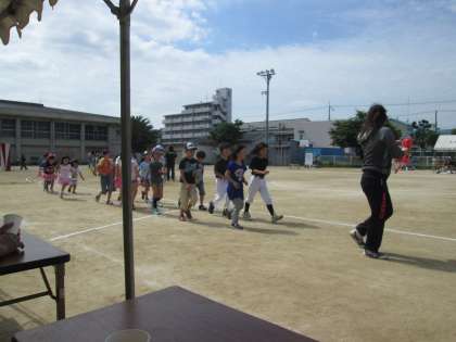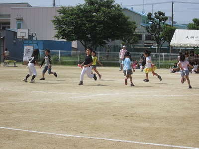 最初の競技は、しっぽ取り。小学校低学年の児童がチャレンジします。