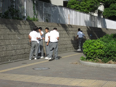 交差点に正門があるため、どうしても月曜になると土日のゴミがたまり、掃除も大変です。でも、あいさつをしながら頑張ってくれています。