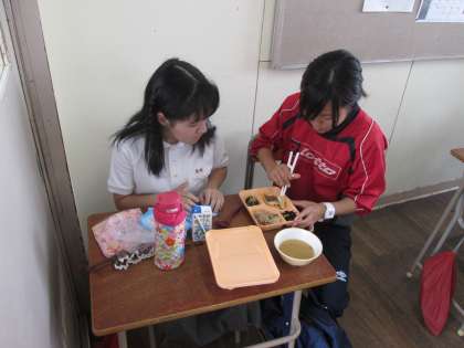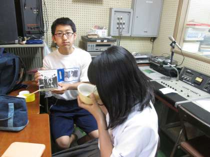 生徒会役員が、お昼の放送で、サゴシなどメニューの説明をしてくれています。