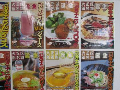 会場は、大正区ならではの会議室。大正アイランドのポスターや「おきナニワん」のメニューがびっしりと。